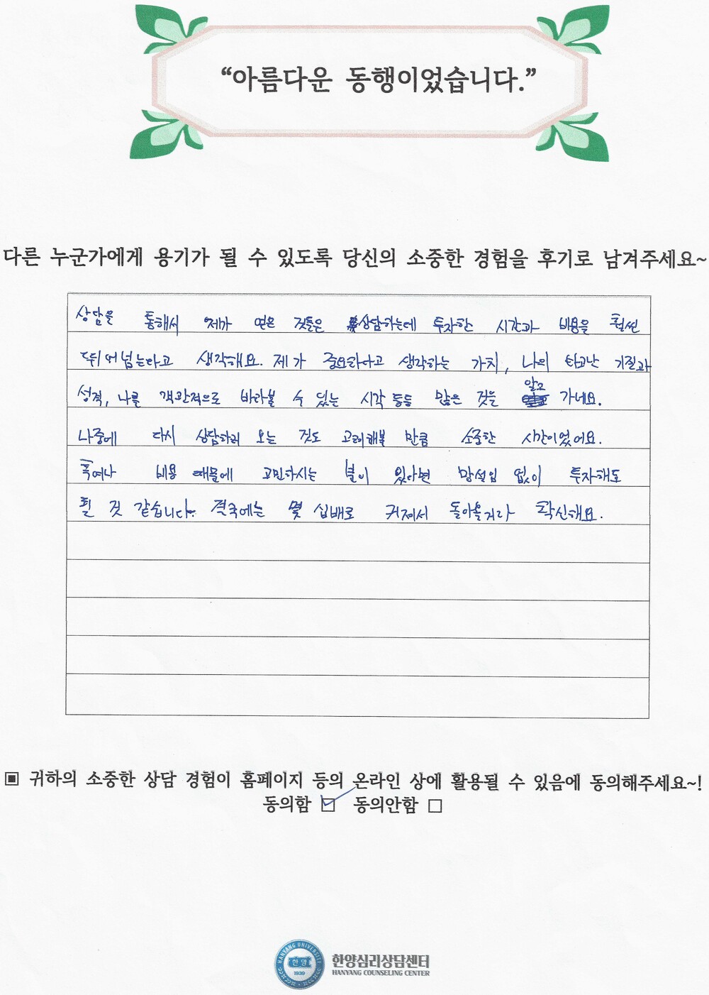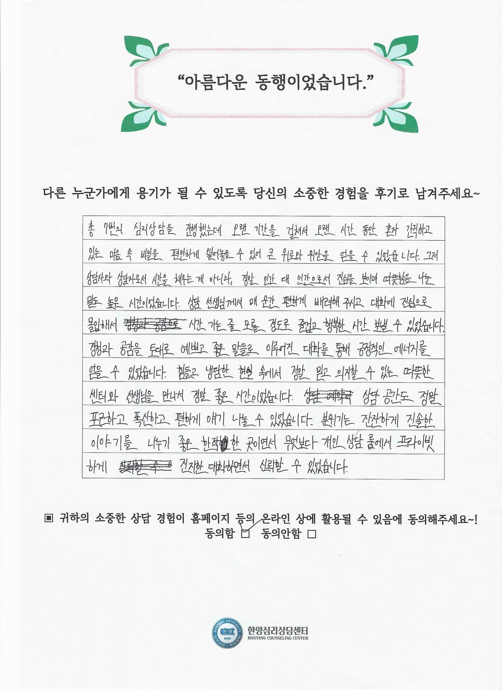 ㆍ20대 초반 여성 내담자 상담 후기(35)