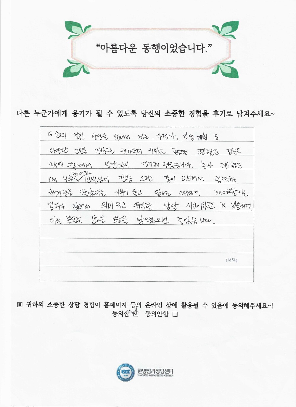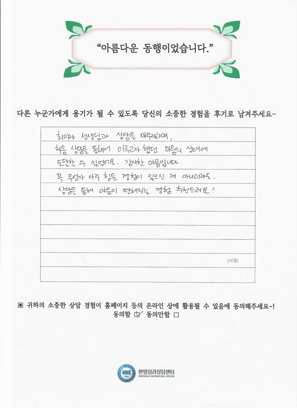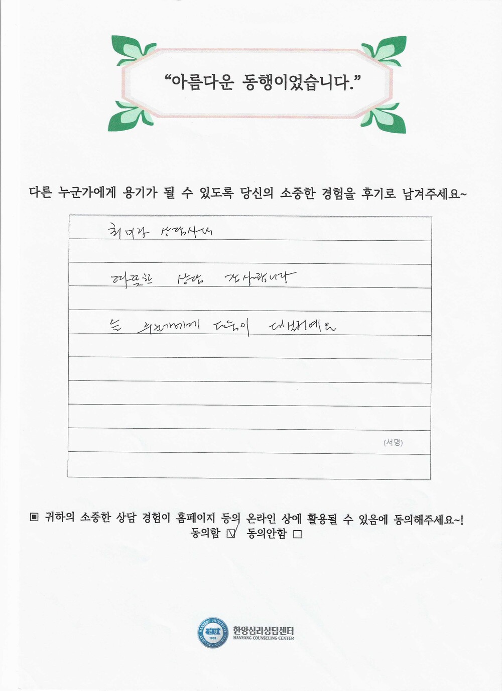 ㆍ30대 중반 여성 내담자 상담 후기(26)