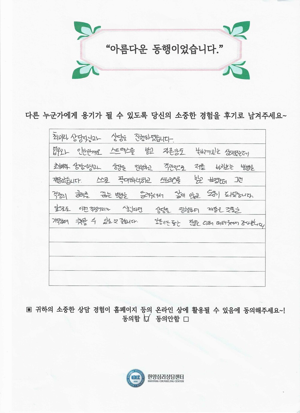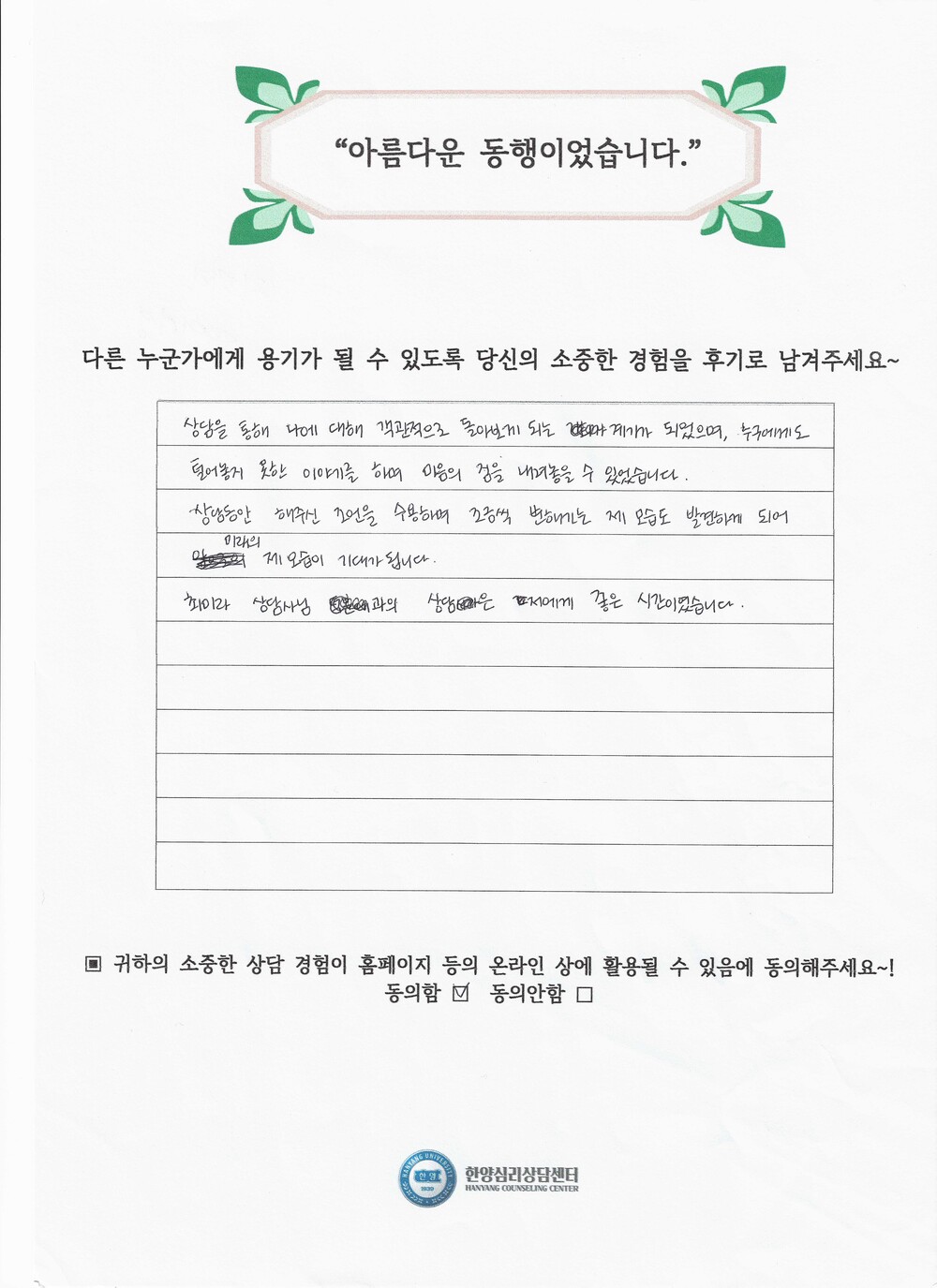 ㆍ40대 중반 여성 내담자 상담 후기(37)