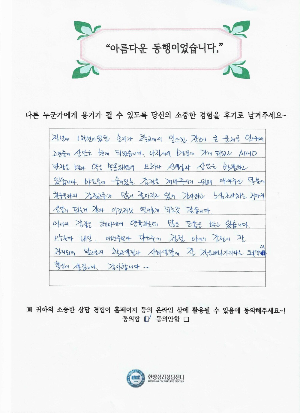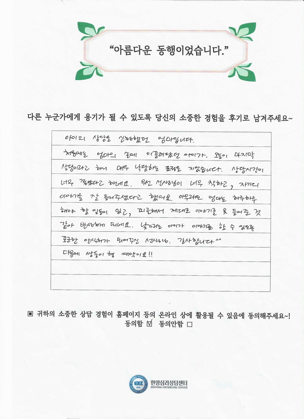 ㆍ초등생(남) 내담자의 보호자 상담 후기(25)