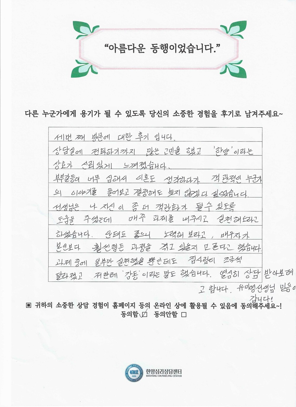 ㆍ40대 초반 여성 내담자 상담 후기(38)