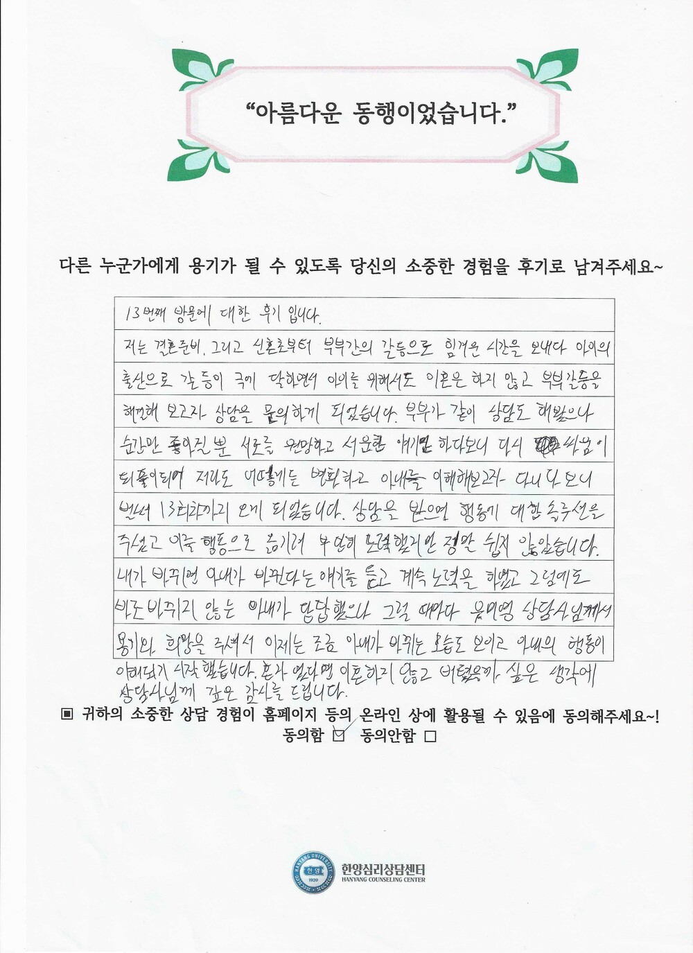 ㆍ40대 중반 남성 내담자 상담 후기(13)